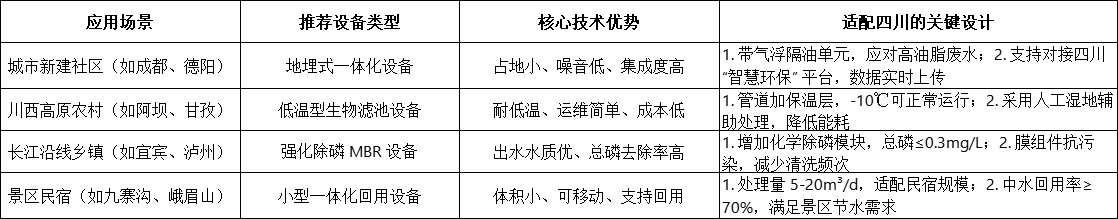 三、技術適配:四川不同場景的生活廢水處理設備推薦